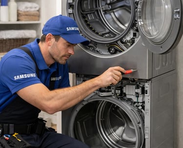 En Servicio Técnico Samsung Ecuador somos especialistas en la reparación de centros de lavado Samsung en Ecuador, ofreciendo soluciones profesionales para equipos combinados de lavadora y secadora. Contamos con técnicos capacitados para atender modelos digitales, inverter y automáticos.